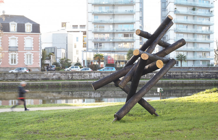 En attendant l’inauguration du futur stade olympique de Tokyo et un complexe hôtelier dans l’Est parisien, Kengo Kuma démontre à nouveau son amour et sa maîtrise du bois avec Dancing Forest, un nichoir à oiseaux sculptural, composé de neuf troncs de châtaigniers, spécialement conçu pour la ville de Rennes à l’occasion de l’exposition « Muz Yer ». Ses commissaires, l’architecte rennais Gwénaël Le Chapelain (agence a/LTA) et le critique d’art David Perreau, ont invité le Japonais à signer l’une des huit « maisons à oiseaux » (muz yer en breton) qui vont prochainement être installées le long d’un parcours de huit kilomètres.