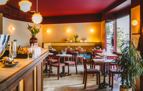 Courte et créative, la carte s’harmonise aux produits du marché et se partage facilement. Endives rôties et lard guanciale, croquettes de patates douces au parmesan, poisson du jour, chou farci ou agneau de lait façon tajine pour deux, tout est délicieux.