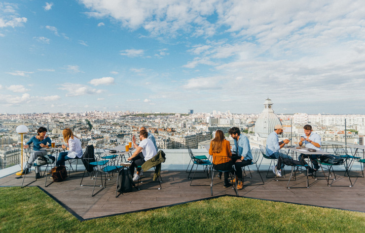 Au-dessus de la gare de Lyon, perché à 60 mètres, Laho, écrin de verdure en plein ciel, profite d’un sublime coucher de soleil sur la capitale. D’ici, les reflets de la Seine, Montmartre à tribord et les dômes d’or de la Rive gauche se fondent en un mirage écarlate. Une fois là-haut (Covid-19 oblige, la jauge est restreinte à 100 personnes), différents espaces semés entre les plantations du collectif potager Sous les fraises, spécialiste des toits cultivés, invitent à cet instant suspendu. Finger food, planches gourmandes (mention spéciale à celle de la mer), créées par la cheffe tout-terrain Julie Basset (Cheffe Studio), et vins d’auteur sourcés par Fleur Godart (Vins et volailles), exhortent à accorder joyeusement solides et liquides.