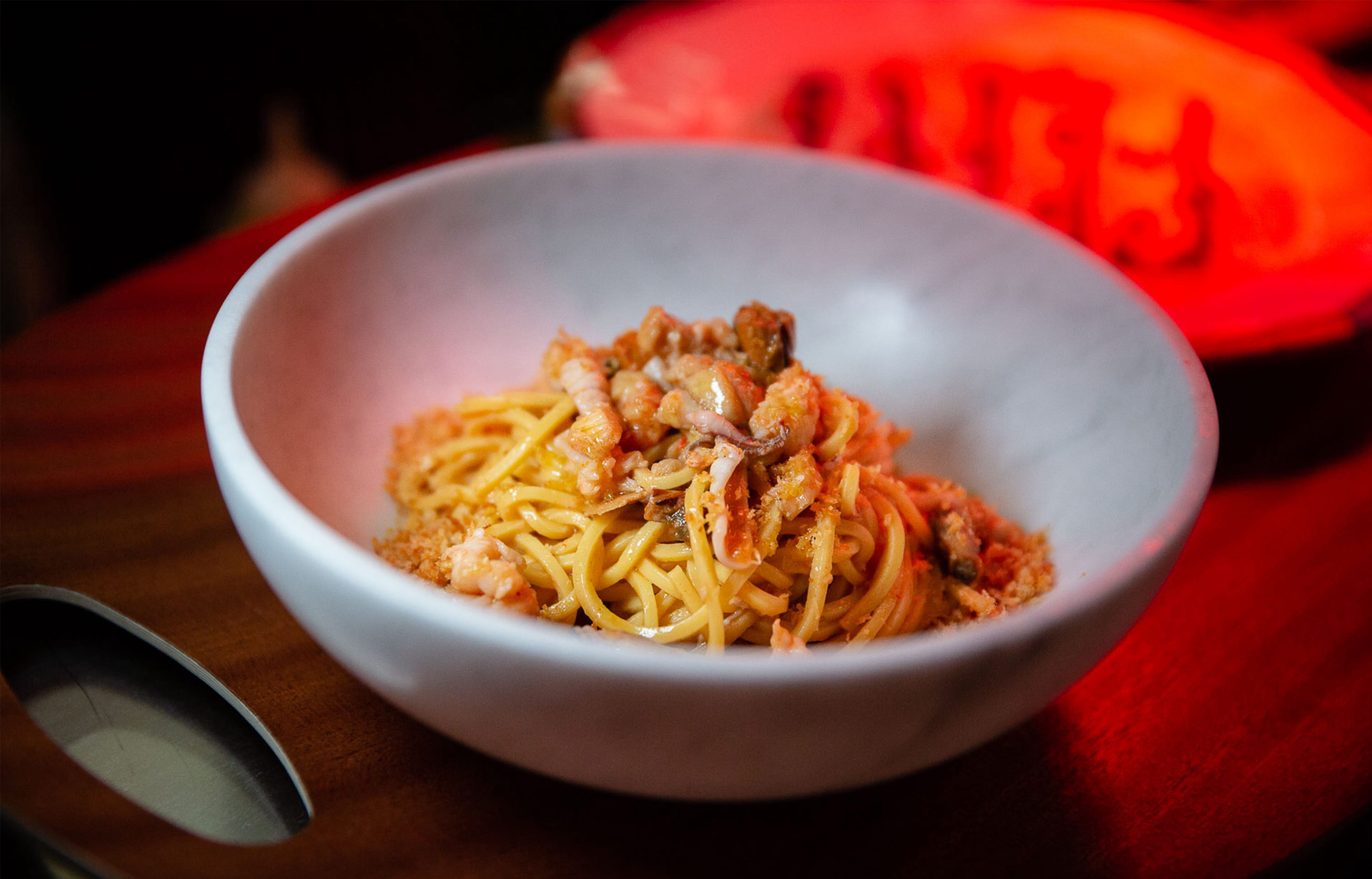 Parce que les fameux spaghettis « à la guitare » (alla chitarra, pour les connaisseurs) sortent vraiment du lot, on les choisit aux fruits de mer, avec ou sans truffe. Ils arrivent chahutés par une chapelure panko, un hit absolu. Pour donner le change, la carte propose deux viandes et deux poissons avant d’aligner de superbes desserts. Cave sérieuse et service allègre sont aussi de la partie.