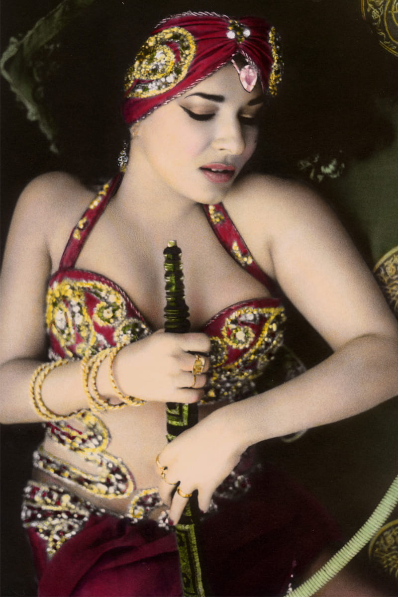 Catherine Deneuve en madone endeuillée regardant l’objectif d’un air las, la chanteuse Natacha Atlas, lascivement allongée, fumant le narguilé ou Salma Hayek exécutant une danse du ventre sur une plage abandonnée… Empruntant à la technique de colorisation du cinéma des années 30, ces clichés kitsch et glamour symbolisent l’univers de Youssef Nabil, formé auprès de David LaChapelle, à New York, puis de Mario Testino, à Paris. Ils reflètent un Orient disparu où régnaient tolérance et insouciance.