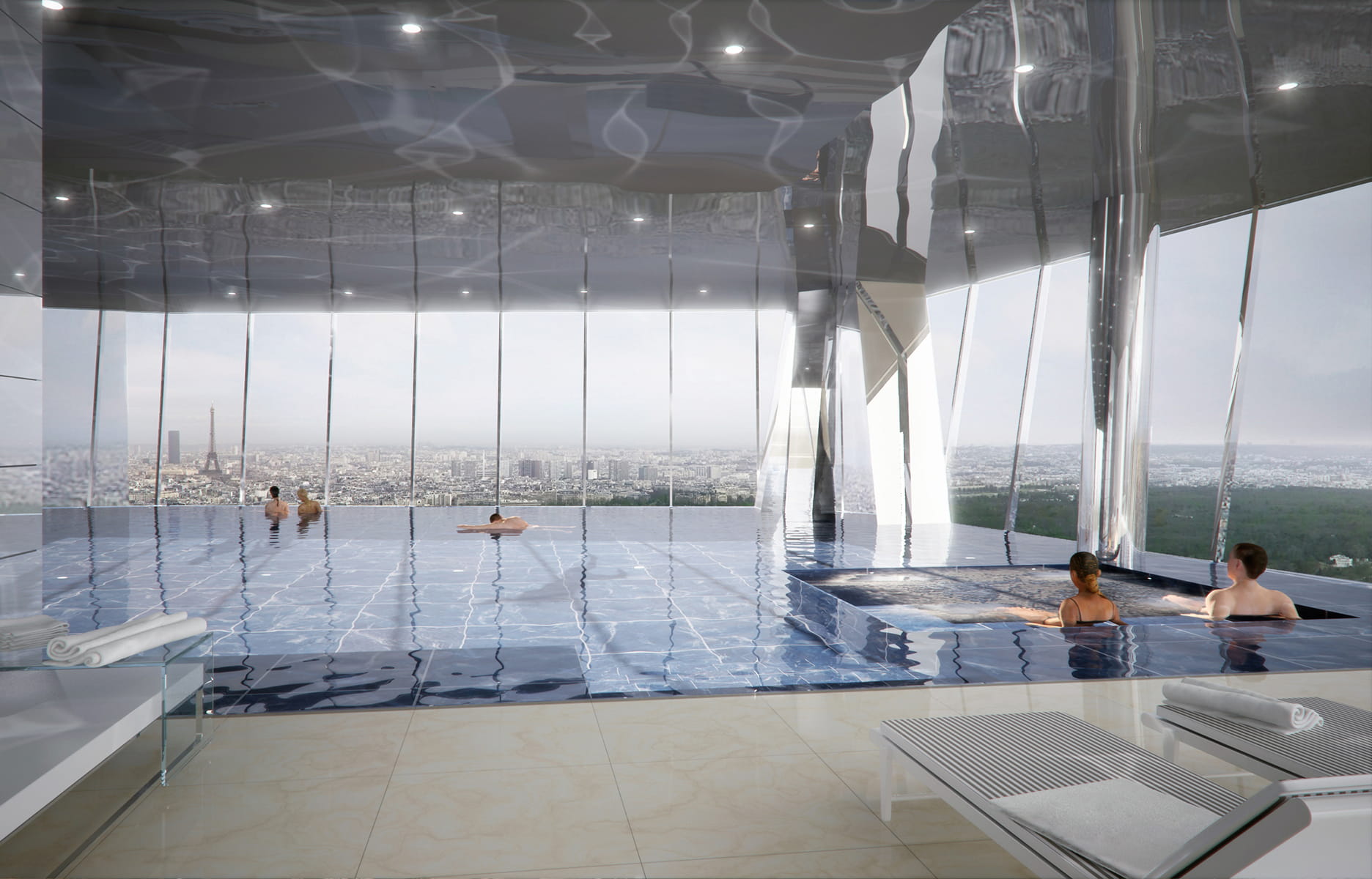 Hauts de 320 mètres, les deux bâtiments de 86 étages s’apprêtent à dépasser de 16 mètres le Shard londonien de Renzo Piano pour devenir les gratte-ciel à usage mixte les plus élevés d’ Europe. Une taille record, néanmoins inférieure de quatre mètres à celle de la Tour Eiffel afin de « respecter l’icône architecturale nationale », d’après le magnat de 42 ans dont le projet s’inscrit dans l’axe historique de la capitale, reliant aujourd’hui le Louvre à l’Arche de la Défense.