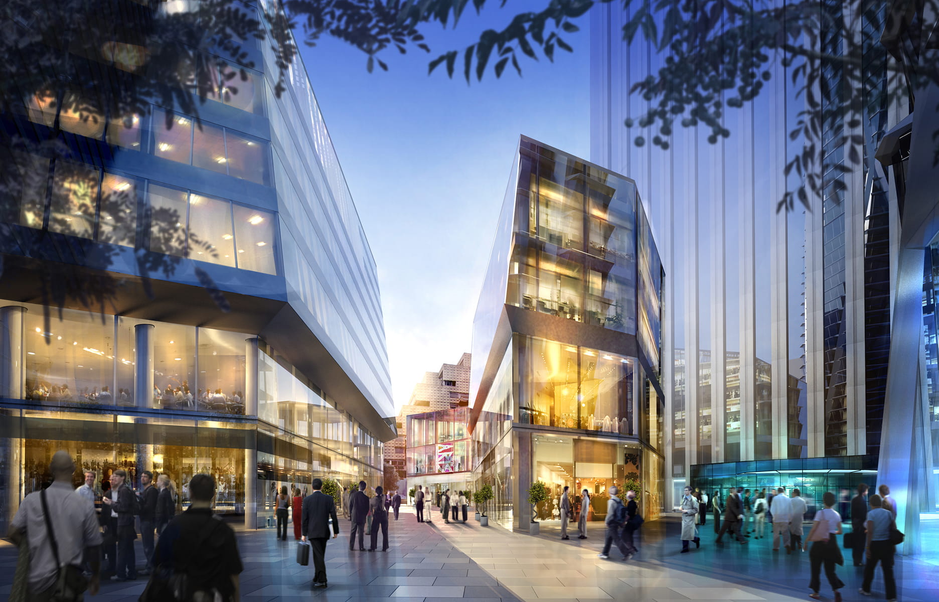 Evasées, les enveloppes facettées tel un diamant sont calculées de manière à favoriser un ensoleillement et une ventilation naturelle, tandis que la trame diagonale de la structure, déjà employée par Norman Foster pour l’Hearst Tower new-yorkaise ou le 30 St Mary Axe de Londres, minimise la quantité d’acier nécessaire au chantier qui doit débuter au début de l’été prochain, après la destruction des immeubles actuels.