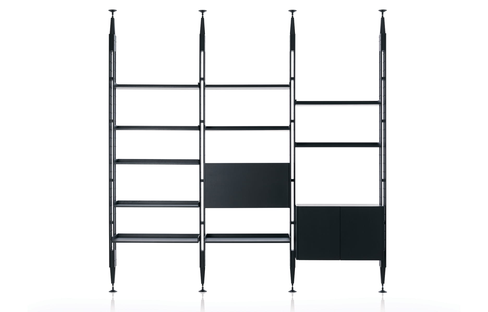 Sa bibliothèque Infinito, conçue en 1957 chez Poggi, est aujourd’hui éditée par Cassina, pour lequel il apparaît comme le maître incarné du design italien. Il est vrai que son autre bibliothèque Veliero, rééditée depuis 2011 par Cassina, est une création unique. Elle a l’élégance et la légèreté d’un voilier, dont elle tire la logique structurelle.