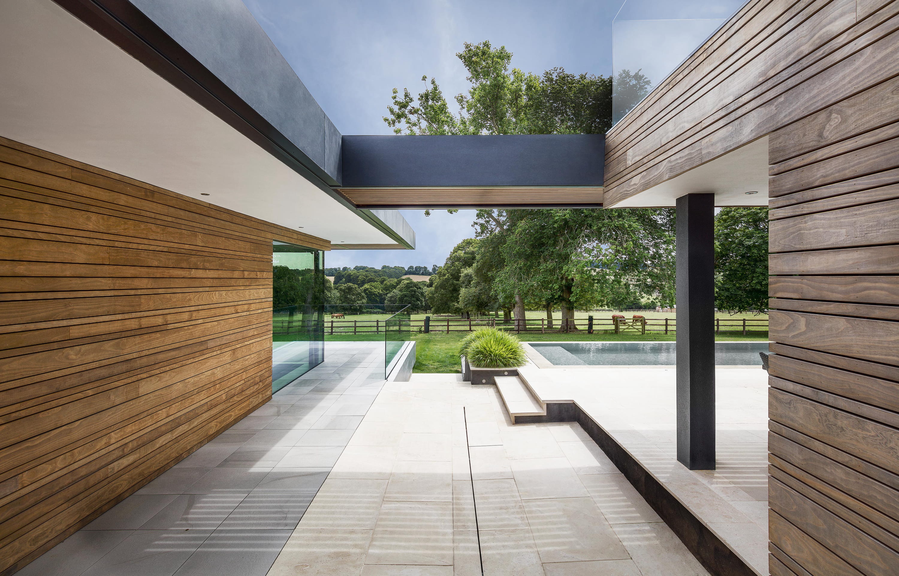 Une palette de matériaux bruts, parfaitement intégrés à la campagne anglaise et à son paysage exceptionnellement préservé grâce à la création du parc national en 2010. Un atout majeur qui, d’après les architectes, constitue la « raison d’être » de cette synthèse entre époques.