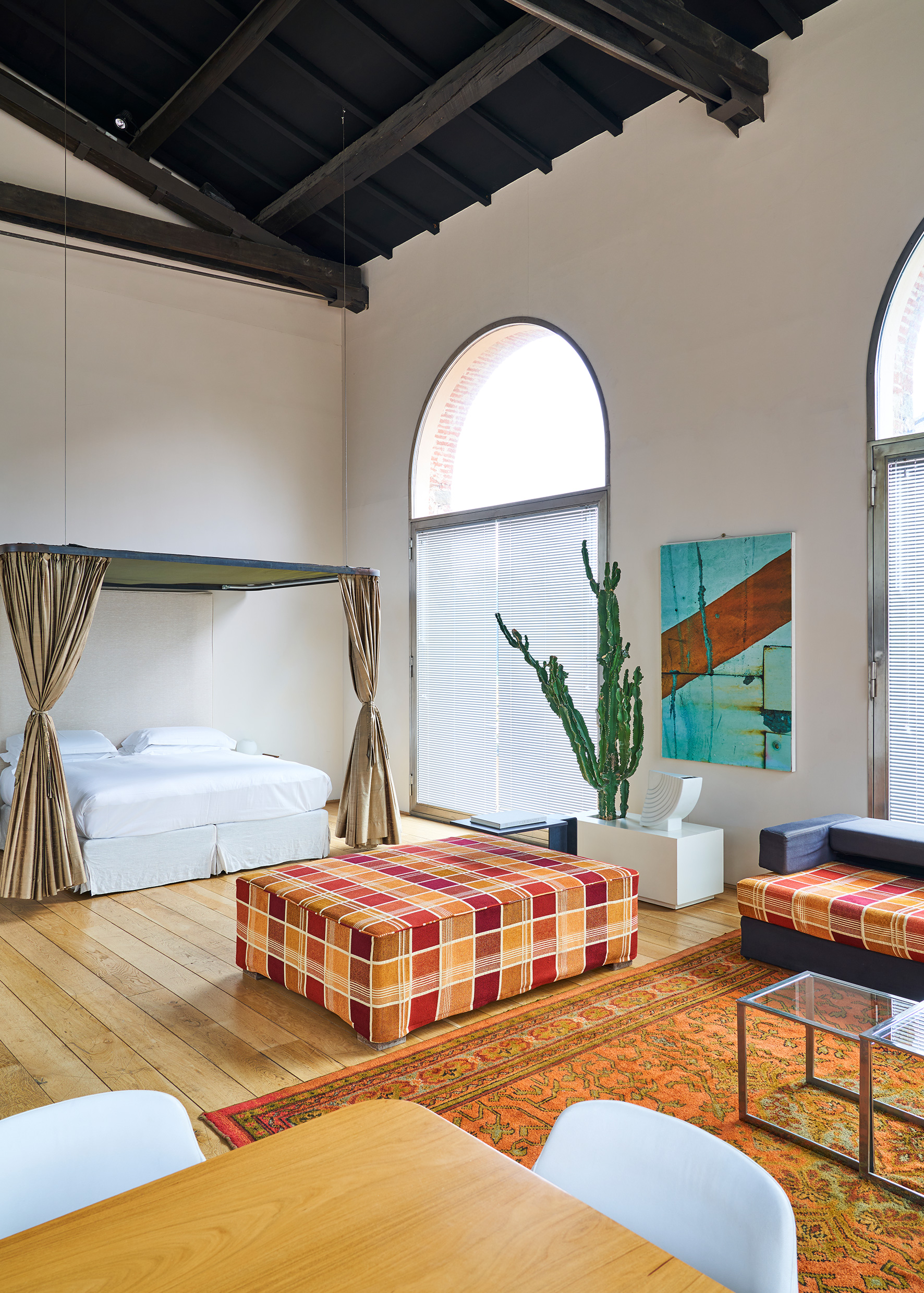 À quelques arrêts de tram du centre-ville, Riva Lofts a un côté « campagne » dû à son jardin, sa piscine extérieure et son hamac pour les beaux jours – abstraction faite de la route très passante. L’adresse a bien traversé le temps. D’un ancien atelier de tissage fin XIXe, l’architecte international Claudio Nardi a fait sa maison-atelier avant de créer ces lofts minimalistes – certains équipés de kitchenettes. La pierre de taille et les lignes pures se réchauffent d’objets chinés. La nouveauté ? Le restaurant Riva Kitchen.