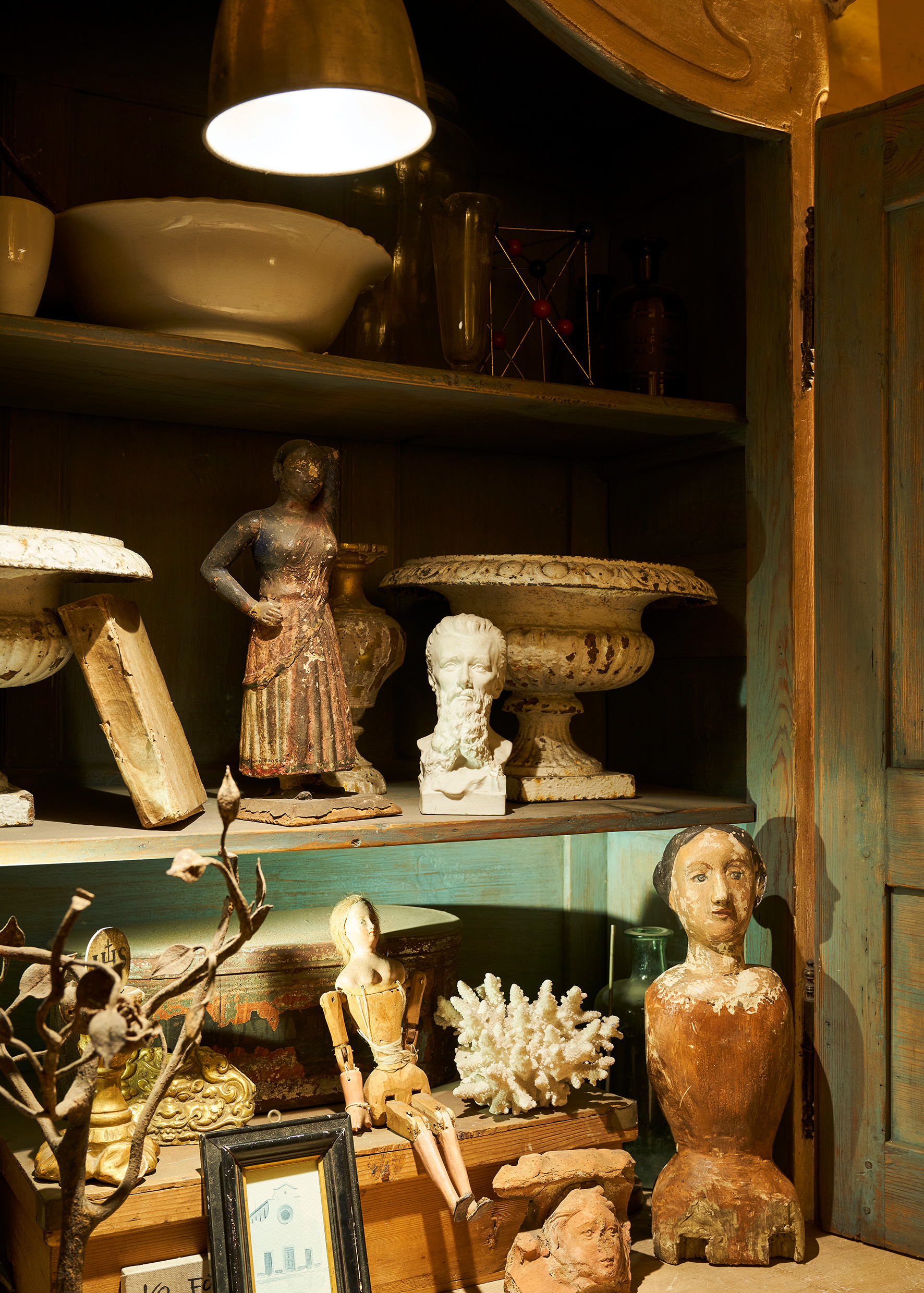 Voici un antiquaire à part… Luca et sa femme vont chiner des objets, parfois, les retapent en leur donnant une nouvelle vie et, surtout, une nouvelle forme. Leur atelier est au fond de la boutique.
