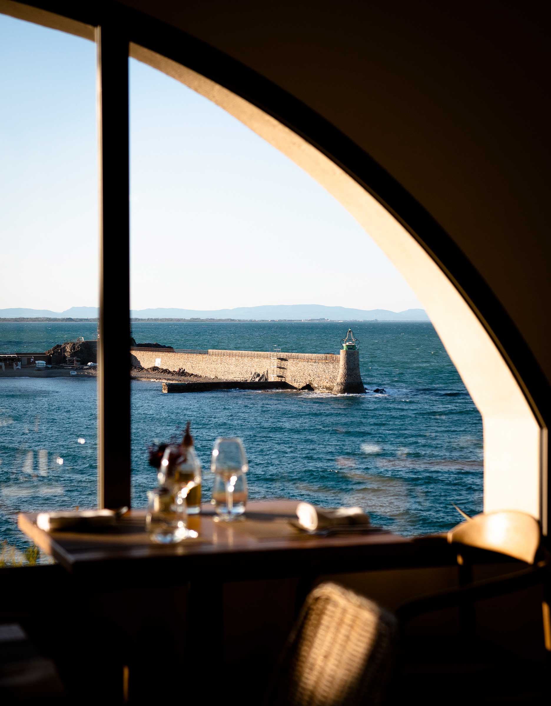 Le chef mixe ses origines italiennes à une touche catalane. Les assiettes sont généreuses. La décoration reste minimaliste : matériaux brut et lignes épurées. Le restaurant, comme l’hôtel attenant des Roches brunes, a récemment été repensé par le cabinet d’architecture Anégil. Dans les chambres, des balcons sont érigés à flanc de rochers. Le bruit de la mer qui s’y cogne joue les berceuses dès que la baie vitrée est ouverte.