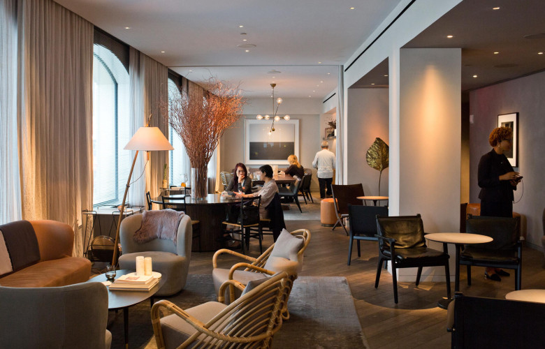 Même le portier, avec ses baskets racées et son pantalon chino feu de plancher, est ici surlooké. Tout juste débarquée à SoHo, cette pépite aimante la faune fashion de la ville, au point qu’il faudra montrer patte blanche à l’entrée du Blond, son bar-club mâtiné de réminiscences 80’s. Les chambres, en revanche, s’envisagent comme des havres de bois blond et de tons pastel que la décoratrice danoise Anda Andrei a meublés d’une épure nordique.
