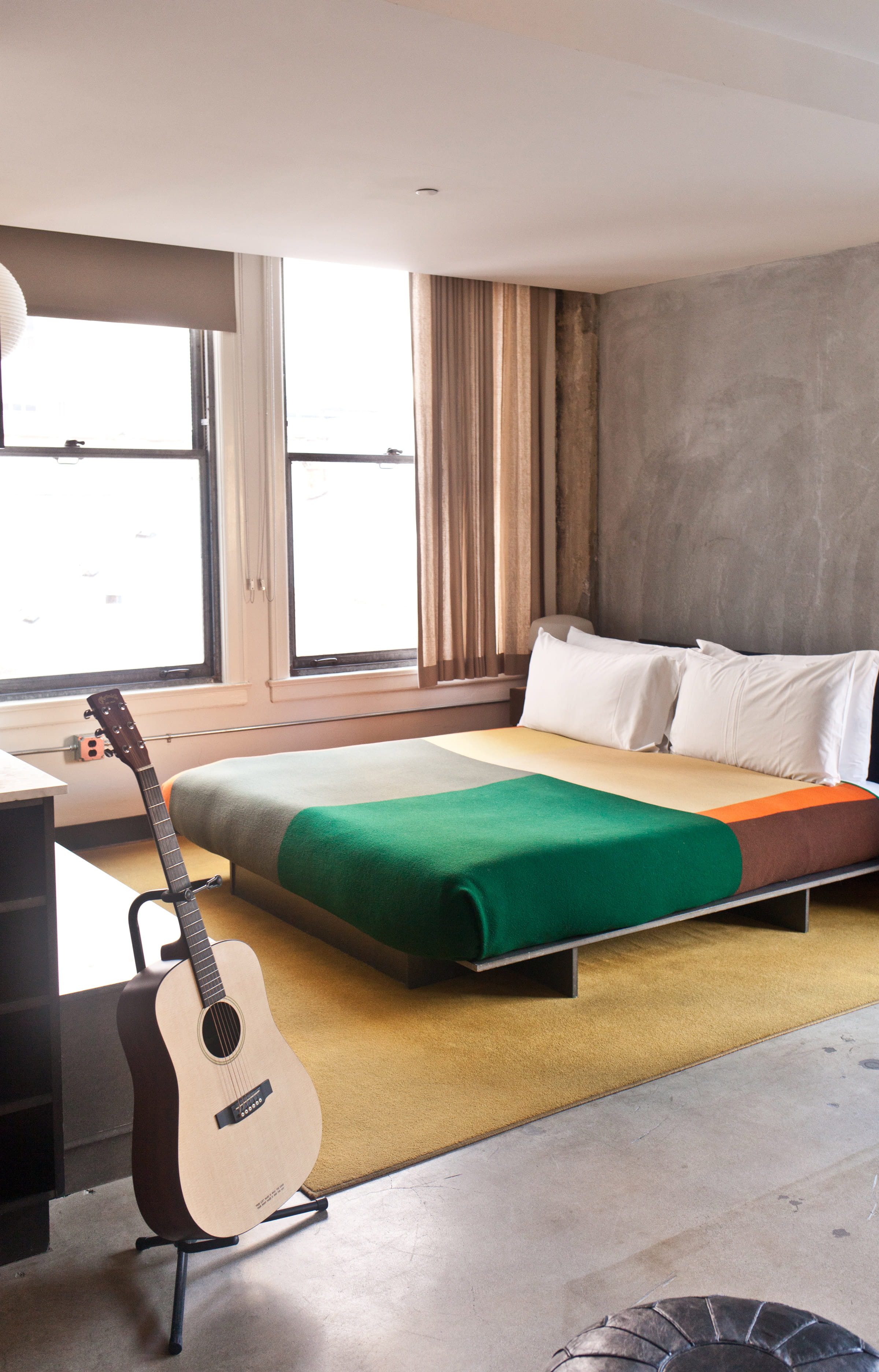 Quelle mouche a piqué, dans les années 20, l’architecte du United Artists Building ? Sa tour, aux fioritures gothiques, est la plus démente de Downtown. Revue par Commune Design, c’est the place to be : son rez-de-chaussée déborde de clients cool à l’heure du brunch. Sur le toit, on bronze ou on trinque au cœur de la skyline. Ses chambres offrent un mix impeccable de béton brut et d’esprit 70’s.