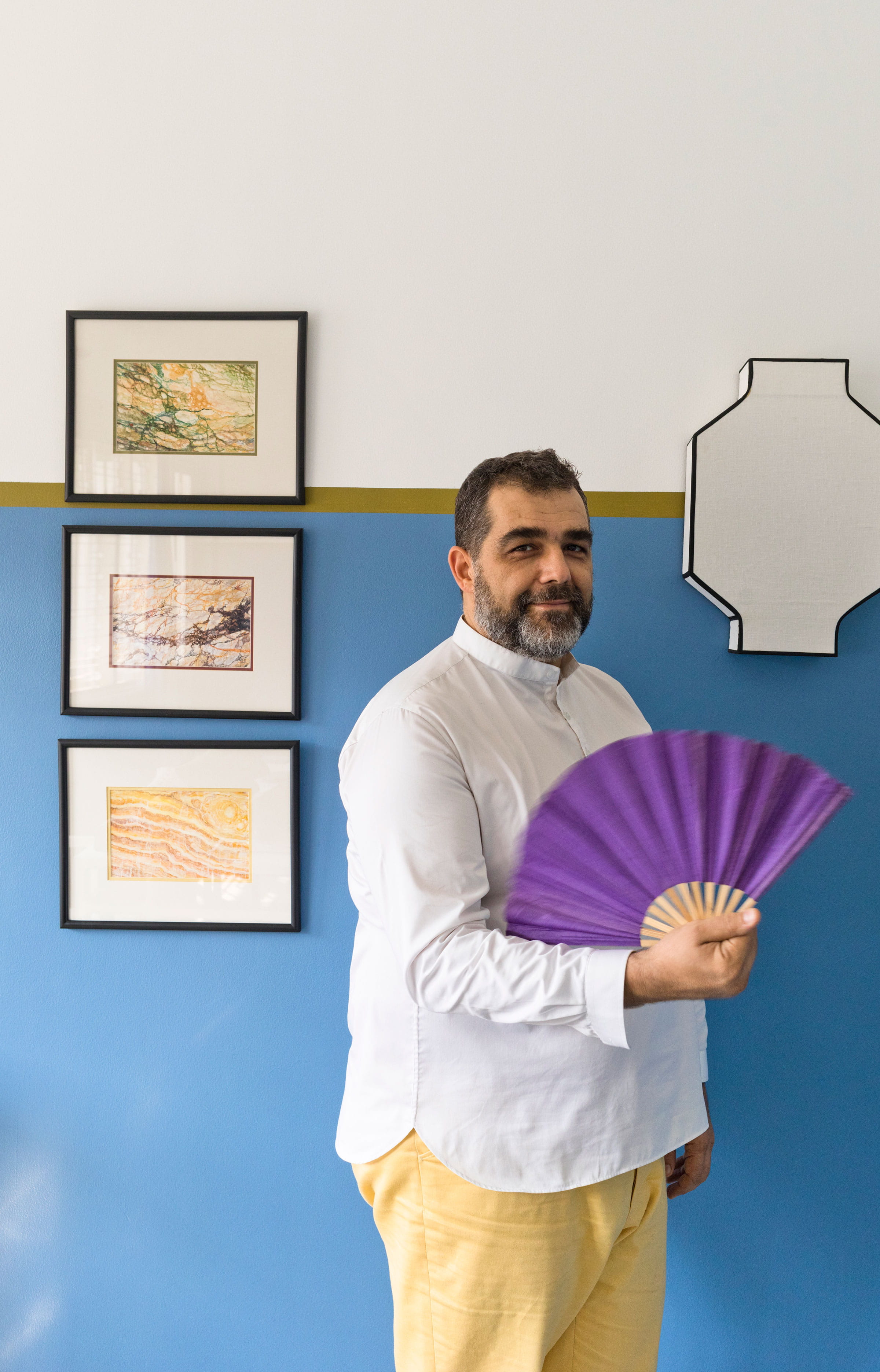 Sa maison des fifties est tout ce dont on rêve. Elle est aussi le showroom de cet architecte d’intérieur qui travaille notamment pour l’hôtellerie et peut métamorphoser une habitation du sol au plafond. Ses somptueux tapis en laine de Nouvelle-Zélande et ses carreaux de ciment graphiques viennent compléter une collection de petits meubles intemporels, réalisés dans une laque mate inaltérable. Leurs lignes marient l’art décoratif français et l’inspiration orientale et leur palette subtile est la signature de ce fabuleux coloriste.