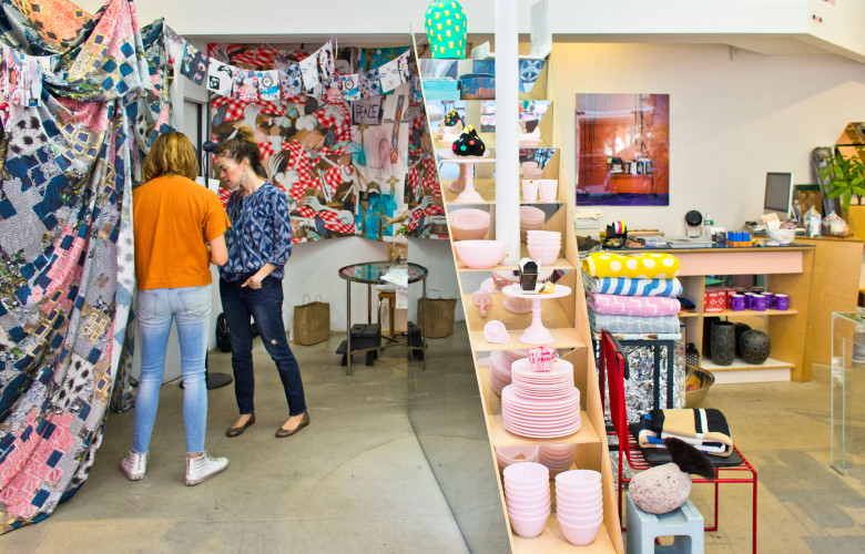 De dehors, on dirait un espace d’art vibrionnant. Fabiana Faria et Helena Barquet avaient, ce jour-là, tendu l’espace d’étoffes psychédéliques et jeté au sol des coussins de grand-mère, si bien que leur sélection d’objets pop irradiait : on y a repéré de la vaisselle de l’Ohio esprit 50’s, d’époustouflants vases en ciment et une chaise Joe Colombo certifiée d’origine.