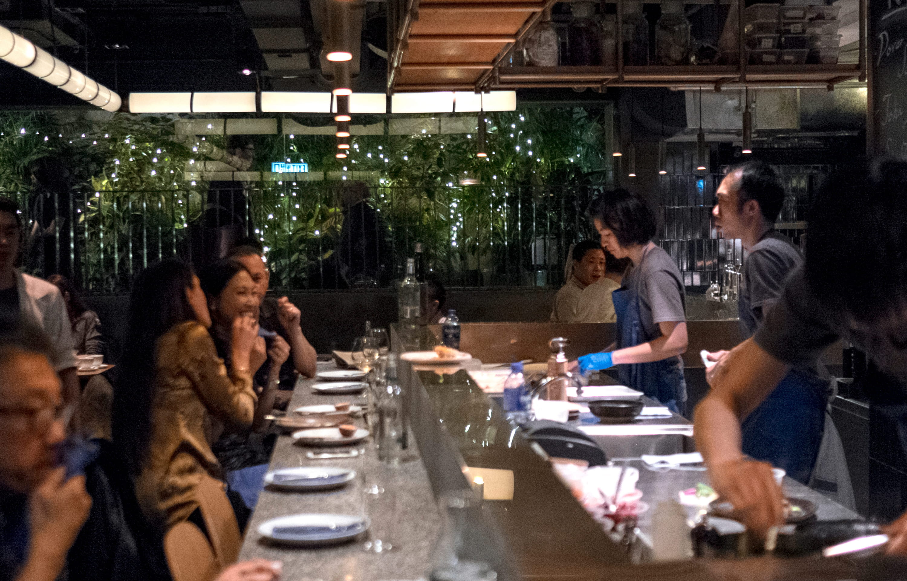 Allez-y les yeux fermés puis ouvrez-les grand sur le décor japonisant avant de filer dans la salle bleu outremer. L’atmosphère doit aussi beaucoup à la pêche du jour mitonnée par David Lai.