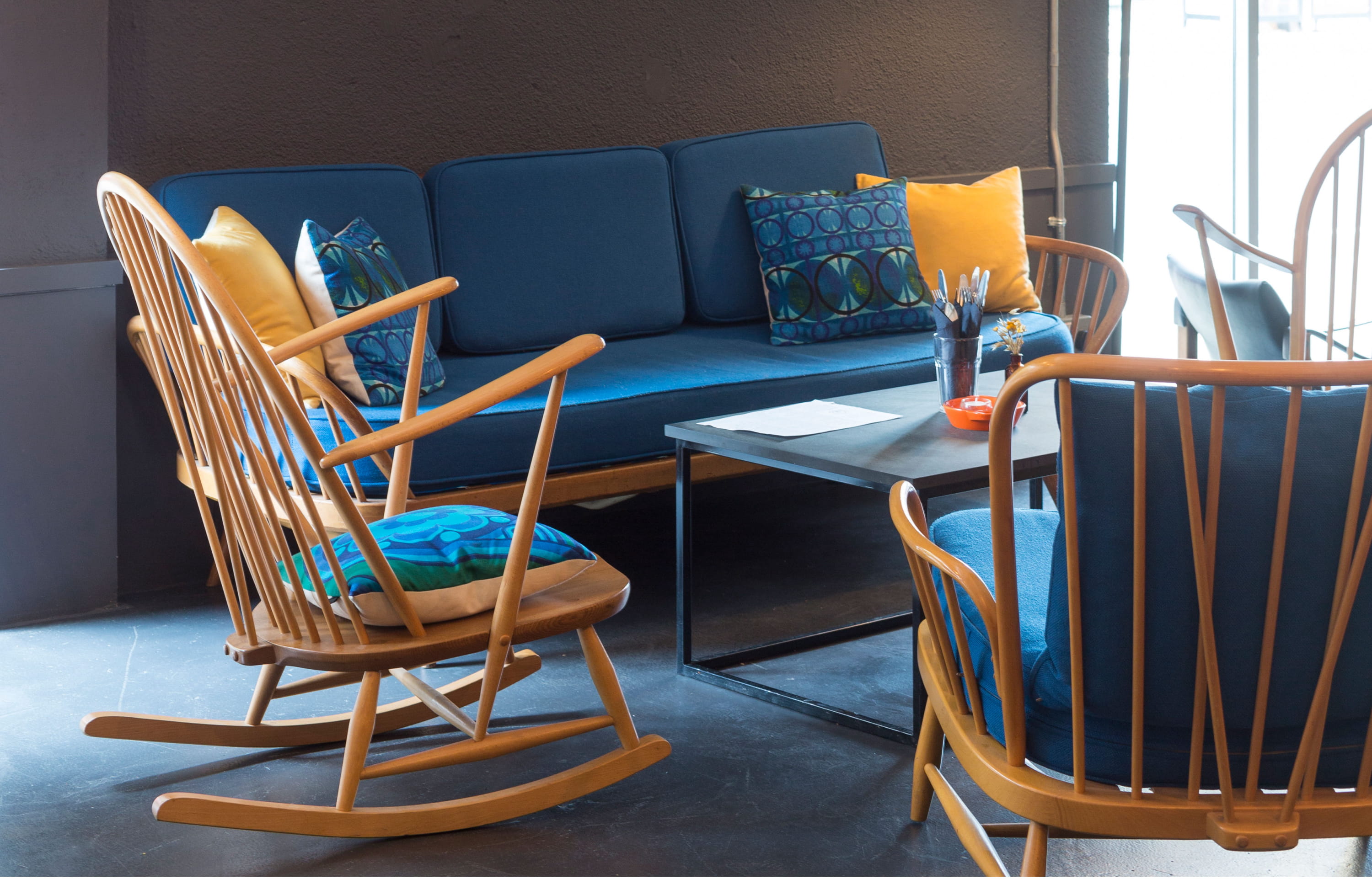 Soupirs et ronflements habitent désormais l’ancienne annexe de la mairie longtemps abandonnée. Ce bâtiment Art déco, transformé en hôtel en 2016, propose 22 chambres, 2 studios et 2 dortoirs à prix serrés. La décoration, simple, réalisée par le studio SODA, allie meubles vintage britanniques Ercol et Stag aux nouveaux fauteuils de la marque Folk. Tous les six mois, Green Rooms prête ses cuisines à un jeune chef.