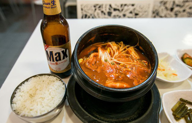 Au dernier étage d’un grand magasin de luxe, le Hanwoori est connu pour ses barbecues et son shabu-shabu, une variante coréenne de la fondue chinoise.