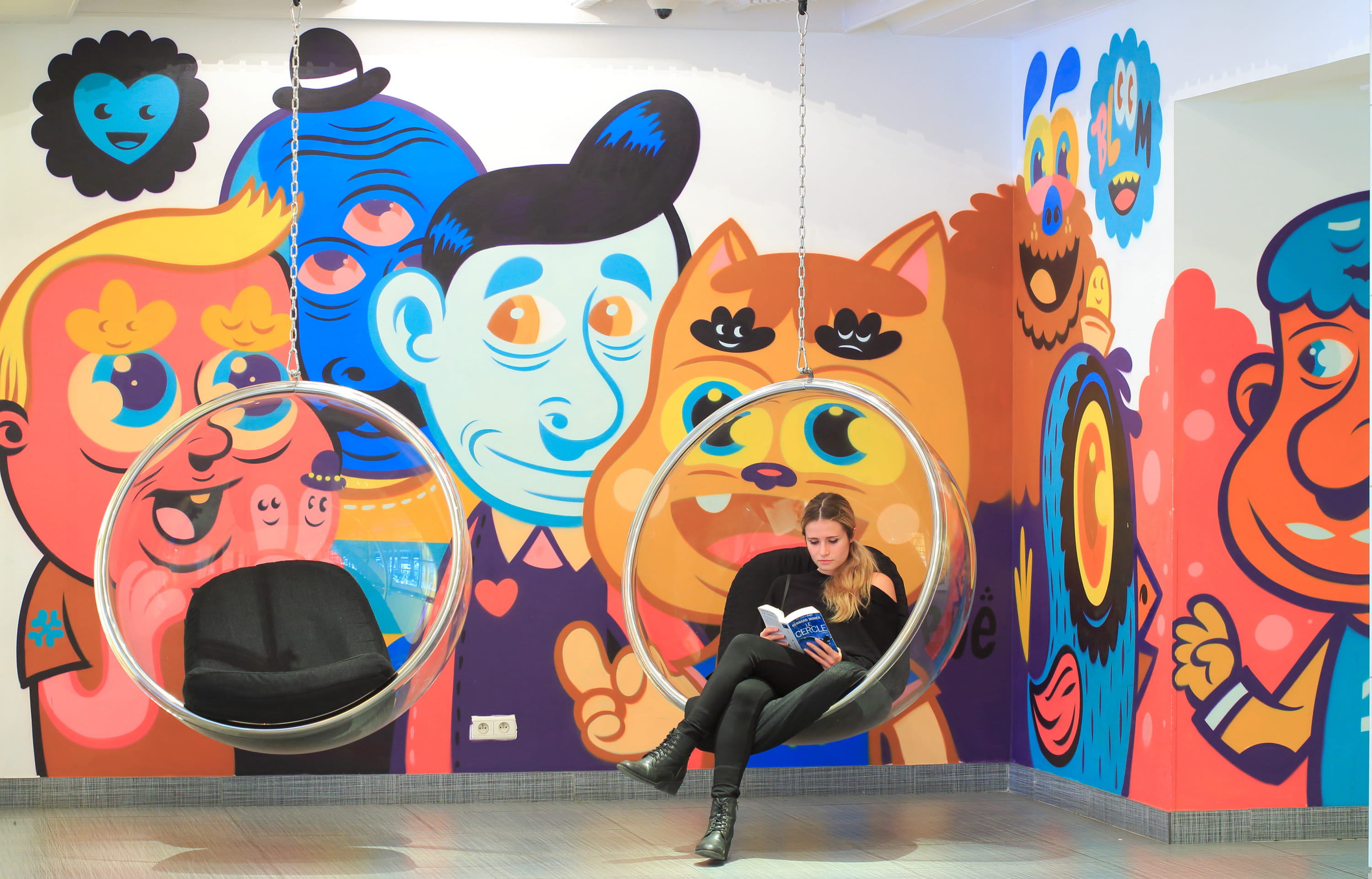 Le camion à gaufres orange des années 70 installé dans le restaurant et les Bubble Chairs qui se balancent face au mur du lobby donnent le ton de cet hôtel, situé en lisière du jardin botanique. Aucune des 304 chambres ne se ressemble.