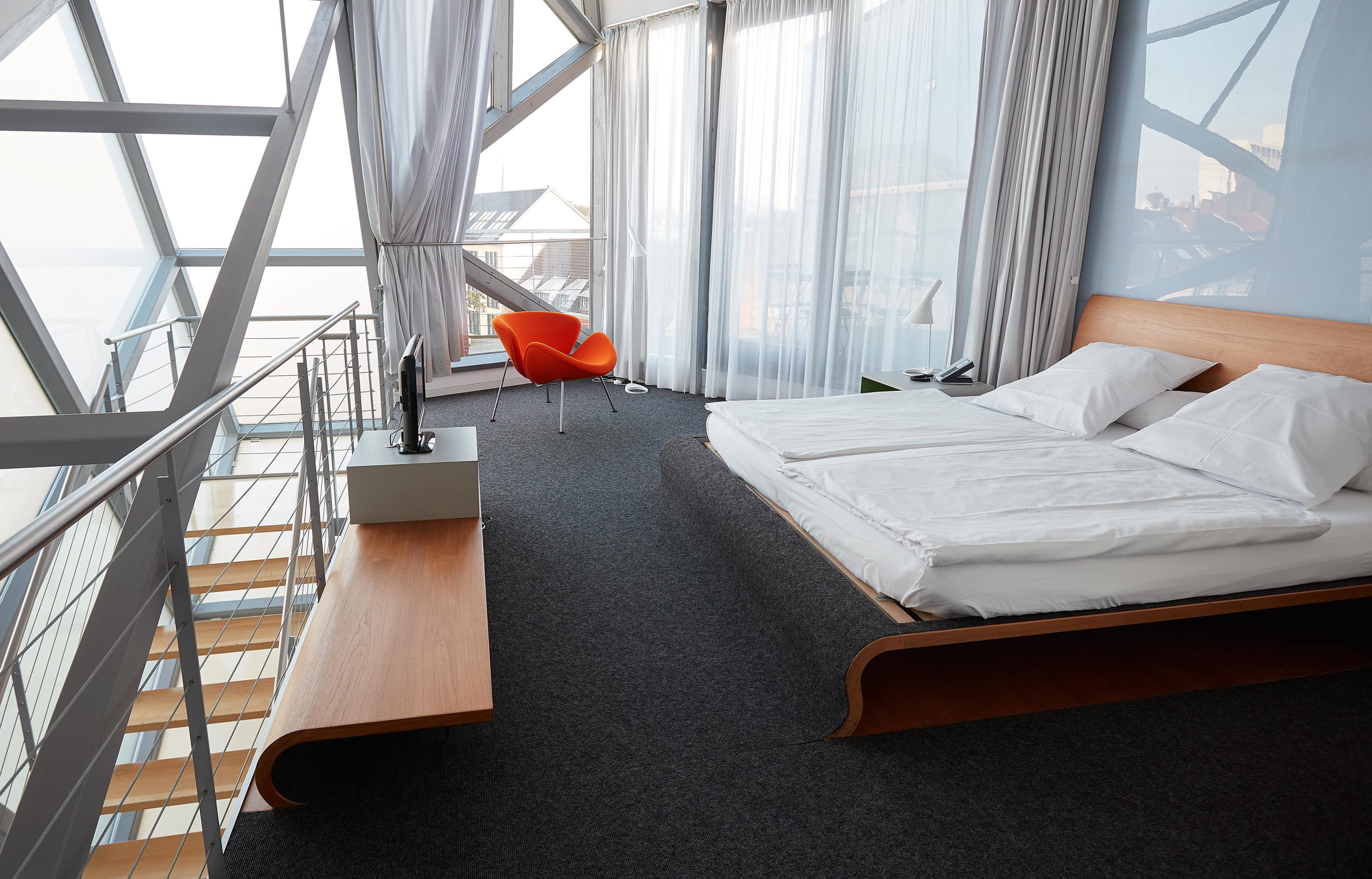 Le Chelsea est à l’origine un immeuble de facture modeste des années 60 mais qui a été coiffé dans les années 90 d’un module architectural postmoderne. Composé d’une maisonnette, de balcons biscornus et de passerelles, l’ensemble abrite sept chambres et une suite, en plus de vingt autres dans les étages inférieurs. Fréquenté par les artistes, qui y ont laissé des traces, comme Martin Kippenberger qui y avait élu domicile en échange d’œuvres, mais aussi Rosemarie Trockel, Günther Förg, Walter Dahn ou A.R. Penck, le Chelsea « transpire » l’art contemporain.