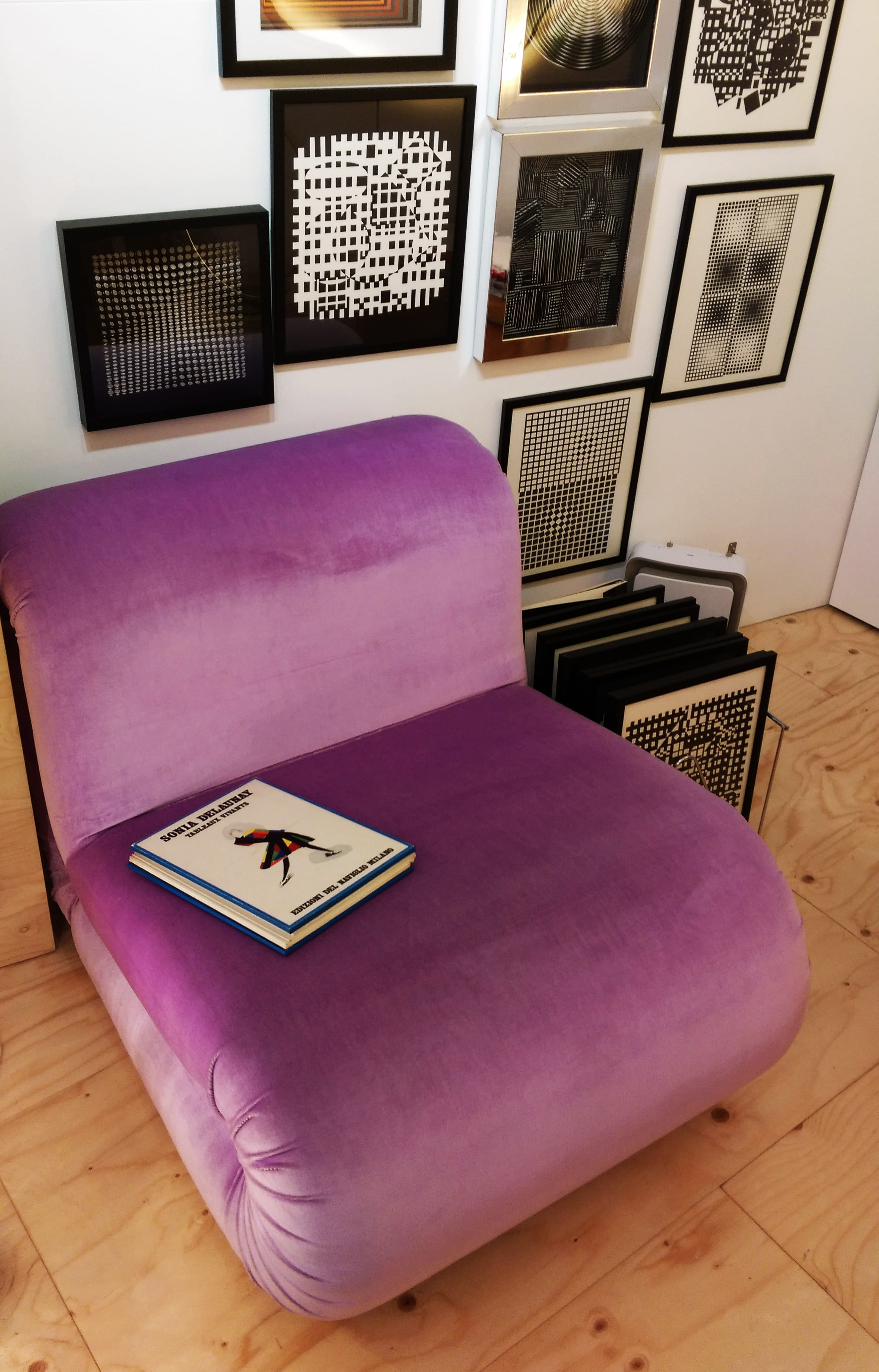 Couleurs délurées, lignes fun et foetales… Le psychédélisme n’en finit plus de venir frapper à la porte de notre imaginaire. Et notamment celui de Patrick Mathieu. La galerie de ce collectionneur d’art cinétique et de design pop vient compléter l’écosystème mis en place rue Clauzel par Hélène, son épouse, avec ses boutiques de vêtements et de chaussures. Un choix malin tant les galeries vintage sont peu nombreuses dans le quartier. Inconditionnel de Vasarely et Agam qu’il propose dans son petit espace, il s’attache à montrer « le plaisir de créer des seventies, que l’on retrouve notamment dans le mobilier de Joe Colombo ou Verner Panton, mais aussi dans les pièces hi-fi de l’époque ». Pour mettre en relief la puissance de cette période fructueuse, il expose de jeunes artistes dont le travail entre en résonance avec le design de cette époque. Une rareté !