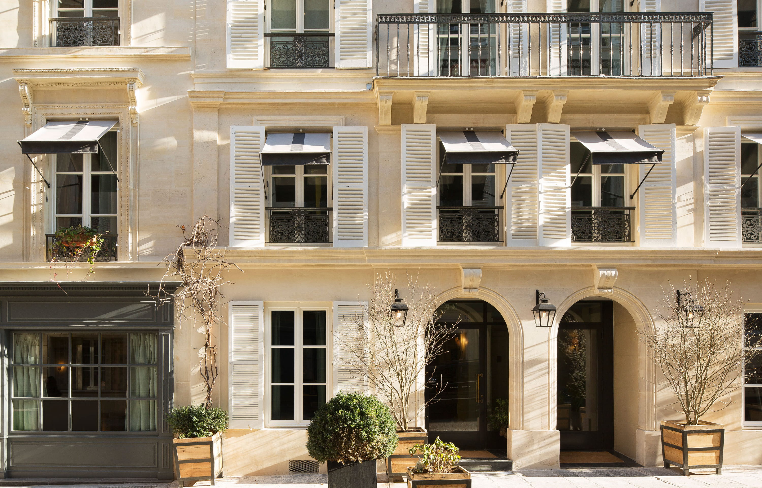 Réunion de trois petits hôtels mitoyens, Le Saint devient grand et se déploie à l’angle des rues de l’Université et du Pré-aux-Clercs. Bertrand Plasmans, en hôtelier avisé, est à la manœuvre de cet ordre néoclassique, british en diable, où la passion pour le style de l’audacieuse Madeleine Castaing se lit au fil de 54 chambres et suites, drapées de Nobilis, Dedar et Farrow & Ball. Aux indispensables de l’hospitalité quatre étoiles répondent de subtils détails : signature olfactive, salle de bains à l’éclairage naturel, appareils de fitness et vélos à disposition. Le restaurant, confié au savoir-faire de l’Affable – une bonne table voisine – joue aussi la carte du bar à cocktails et du snacking.