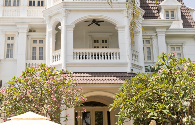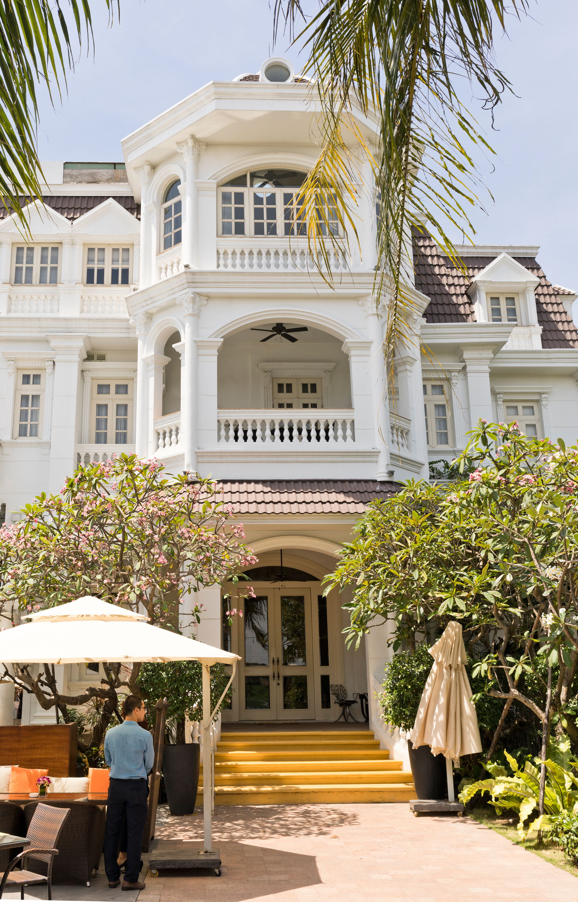 Cette maison bourgeoise d’inspiration coloniale fait face à la rivière sur laquelle on voit défiler, à l’heure du petit déjeuner, les barges lourdement chargées. Les chambres, avec lits à baldaquin et salle de bains-boudoir, regardent le fleuve ou le jardin et ses frangipaniers, pour une retraite fraîche et calme dans le quartier branché de Thao Dien, à l’écart du centre-ville.