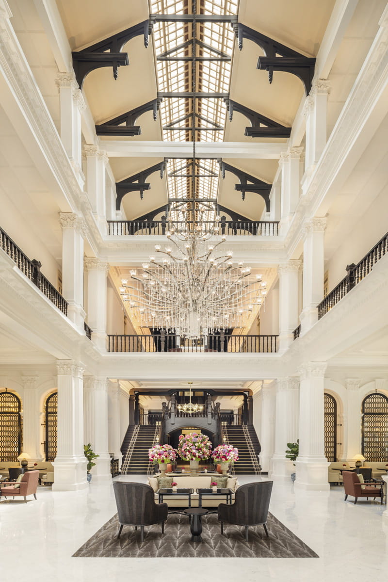 Dans la cité-État ultramoderne, le Raffles fait figure de vieux sage. Depuis 1887, cet hôtel de luxe a vu passer les plus grands, des écrivains aux stars de cinéma : Rudyard Kipling, Ernest Hemingway, Elizabeth Taylor ou encore Ava Gardner. Son cocktail signature, le Singapore Sling, servi au Long Bar, est connu dans le monde entier. En août dernier, le 5-étoiles est sorti d’une longue rénovation sous la houlette d’Alexandra Champalimaud, appuyée par le cabinet d’architecture et d’aménagement intérieur Aedas. Le résultat est bluffant. Bien ancré dans le XXIe siècle, il a toutefois su garder toute son âme et offre une délicieuse échappée dans le temps. B.D.