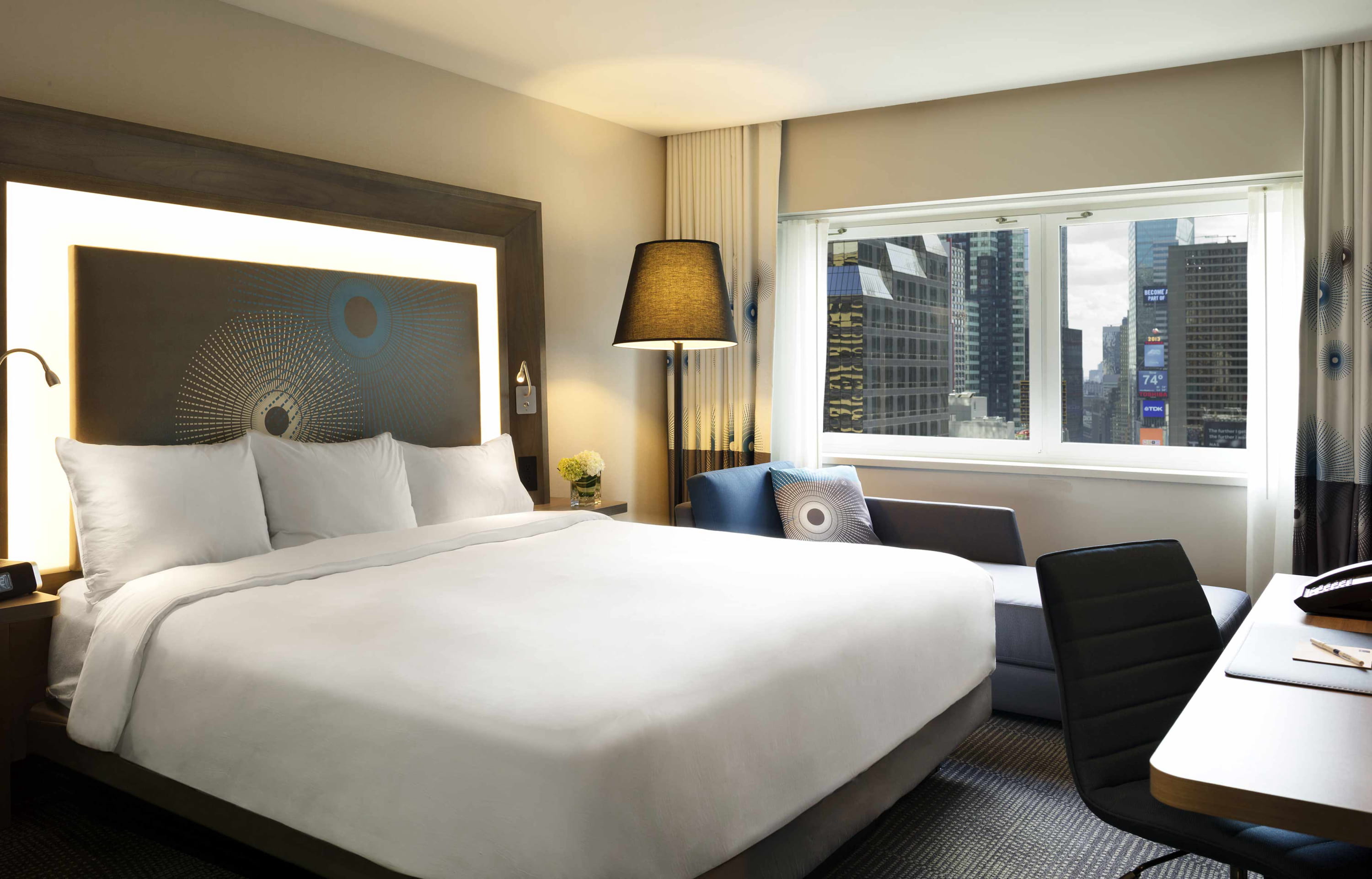 Difficile de trouver plus central que cet hôtel et ce malgré une concurrence féroce à Manhattan ! Ce Novotel (Accor), rénové il y a quelques années, offre une vue époustouflante sur Times Square, au cœur de la presqu’île. Proposant près de 480 chambres confortables et insonorisées, ce 4-étoiles tutoie les nuages avec élégance du haut de ses 33 étages. Le restaurant, bar et lounge SuperNova, à la déco très Retour vers le futur, décline une carte généreuse en cocktails, vins et whiskys. B.D.