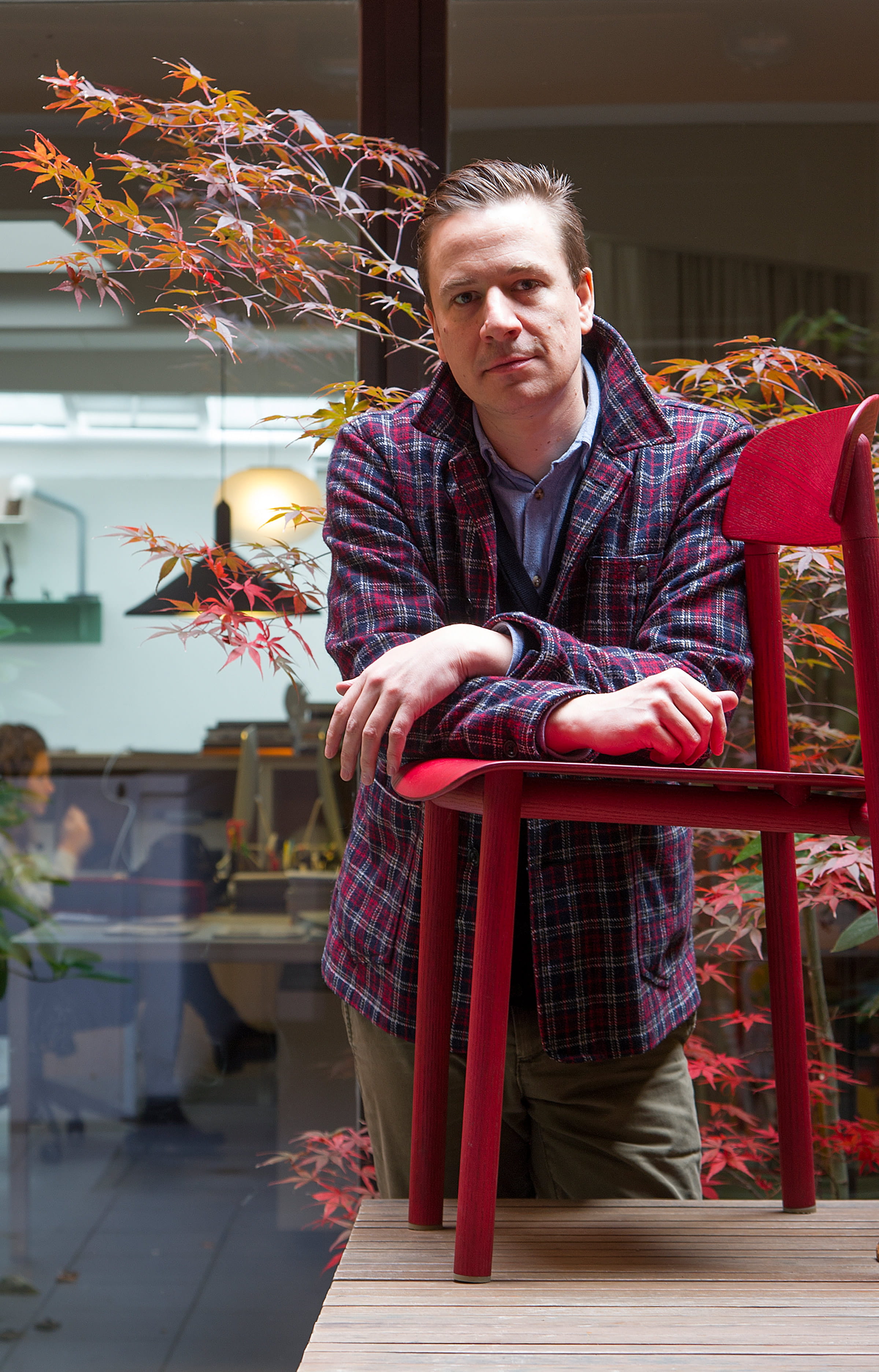 Car à l’instar d’un Géo Trouvetou, Sylvain Willenz aime se frotter à la matière et à la fabrication. Pendant ses études, il passe du temps dans une usine qui le laisse faire des essais. Et en 2002, il invente Dr. B, une assise qui mêle bambou et caoutchouc, vite repérée par la presse et auréolée d’un prix à la biennale Intérieur de Courtrai. Celle-là même qui lui décerna le titre de designer de l’année en 2009. À 37 ans, après avoir vécu aux États-Unis, en Belgique et au Royaume-Uni, Sylvain Willenz est souvent présenté comme un designer industriel. Lui préfère se considérer comme « quelqu’un qui imagine des produits les plus pertinents possible et travaille avec l’industrie. J’aime autant développer ma vision esthétique de l’objet que m’intéresser au travail industriel. Je suis passionné par cette idée du produit fabriqué en série, par l’intelligence derrière la mise en œuvre. » Et par les matériaux, ce qui le pousse à expérimenter les matières plastiques, mais aussi le bois et le verre, comme lorsqu’il répond en 2012 à l’invitation du Cirva (Centre International de Recherche sur le Verre et les Arts plastiques) à explorer de nouveaux territoires. Avec de tels centres d’intérêt, devenir designer semblait une voie logique. Et pourtant… « J’ai toujours eu un attrait pour le dessin,pour la bande dessinée, ce qui n’a rien de surprenant pour un Belge, plaisante-t-il. En sortant de l’école, je voulais faire de l’illustration mais je n’étais pas très sûr de moi. Alors j’ai suivi le cursus de Design Product du Royal College of Art de Londres où, pendant la première année, on touche à tout. C’est là que j’ai découvert le design et cette forme d’interrogation. Car lors de cette approche, le leitmotiv est : pourquoi ? On nous apprend à tout remettre en question. Aujourd’hui, de mon intérêt pour l’illustration, il me reste le fait de dessiner en 3D et un certain trait dans mes créations. »