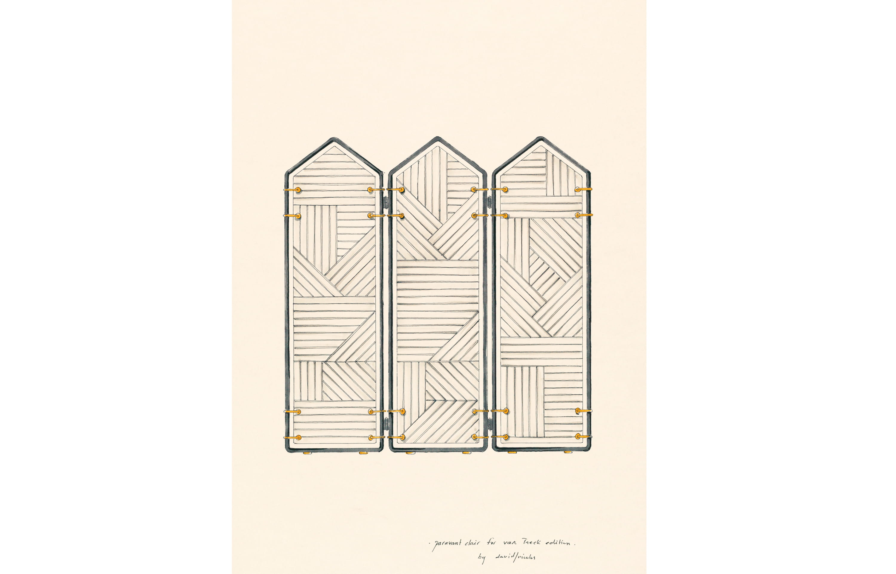Une fois ce travail de tri accompli, Karine Scherrer a créé une galerie accessible uniquement via Internet où ces travaux préliminaires, signés par leurs auteurs, sont mis en vente. Parmi les quelque 80 œuvres proposés, on trouve aussi bien une planche de croquis de Pierre Favresse pour son enceinte en forme de casque d’escrime (Habitat) que des dessins au crayon de Sam Accoceberry, des motifs libres peints par José Lévy, des esquisses colorées de Guillaume Delvigne incroyables de précision ou un prototype en tôle de Victoria Wilmotte.