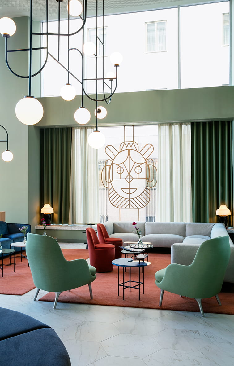 Jaime Hayon est un designer overbooké. Alors, pour concilier tous ses projets, il a distillé çà et là dans l’hôtel quelques-unes de ses pièces préférées (luminaires, tables et chaises), créées en collaboration avec des grands noms comme Fritz Hansen, Cassina, &Tradition, Gubi ou Arflex. Quoi de mieux de ses propres produits pour incarner son univers ?