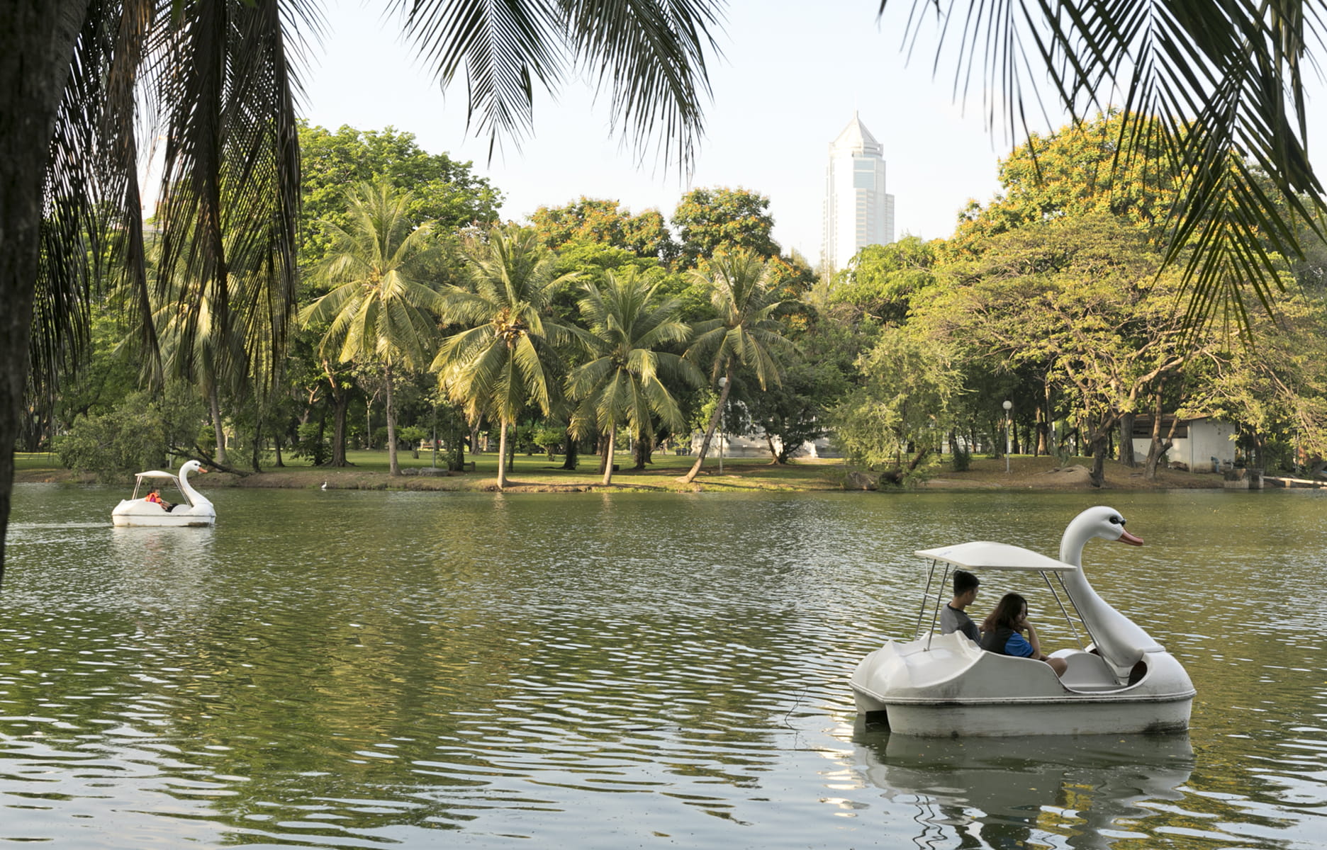 C’est un fait : Bangkok, qui compte 10 millions d’habitants, a atteint un seuil critique de pollution l’hiver dernier à cause de ses embouteillages monstres. Tara Buakamsri, directeur de Greenpeace Thaïlande, lançait d’ailleurs fin février un cri d’alerte rapporté par Le Monde : « Ça ne peut pas continuer comme ça : Bangkok est en train d’asphyxier ! » Heureusement, quelques initiatives sont déjà lancées. Les lignes souterraines et aériennes (métro et Skytrain) croissent presque aussi vite que la végétation tropicale. « Dans dix ans, le réseau de transports en commun sera plus important que celui de Londres », affirme avec conviction Torsten Richter, le dynamique directeur du SO Sofitel. Ce dernier court chaque jeudi matin avec les clients de l’hôtel qui désirent le suivre dans le parc Lumphini, poumon vert avec lac et pédalos-cygnes délicieusement rétro.