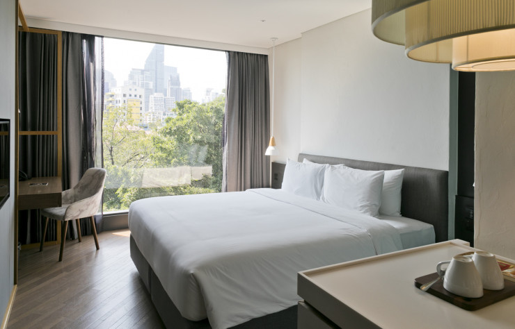 Cette charmante adresse indépendante de 28 chambres mixant esprit récup et sobriété scandinave, quoique 100 % designed in Thailand, est cachée dans une rue ombragée du quartier de Thonglor, à deux pas du restaurant Bo.lan. La table du lobby invite au coworking. La lumière tamisée par les arbres dans les chambres est un appel au zen. Pas de piscine, mais une petite terrasse sur le toit où poussent des plantes aromatiques. À l’accueil, une carte joliment illustrée répertorie les adresses préférées du jeune propriétaire.