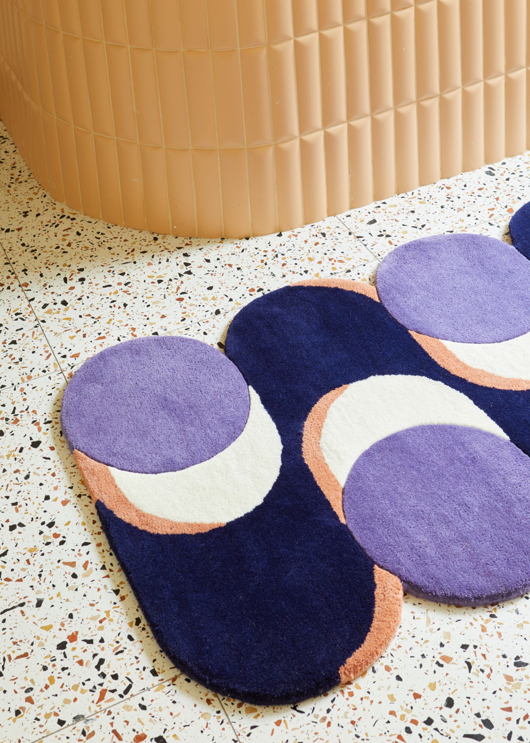 Pièce textile tufté main Minotor Oblong, collection « Céleste », signée Christian Signorel, en laine, 3 formats, 3 dimensions (Diacasan Édition).