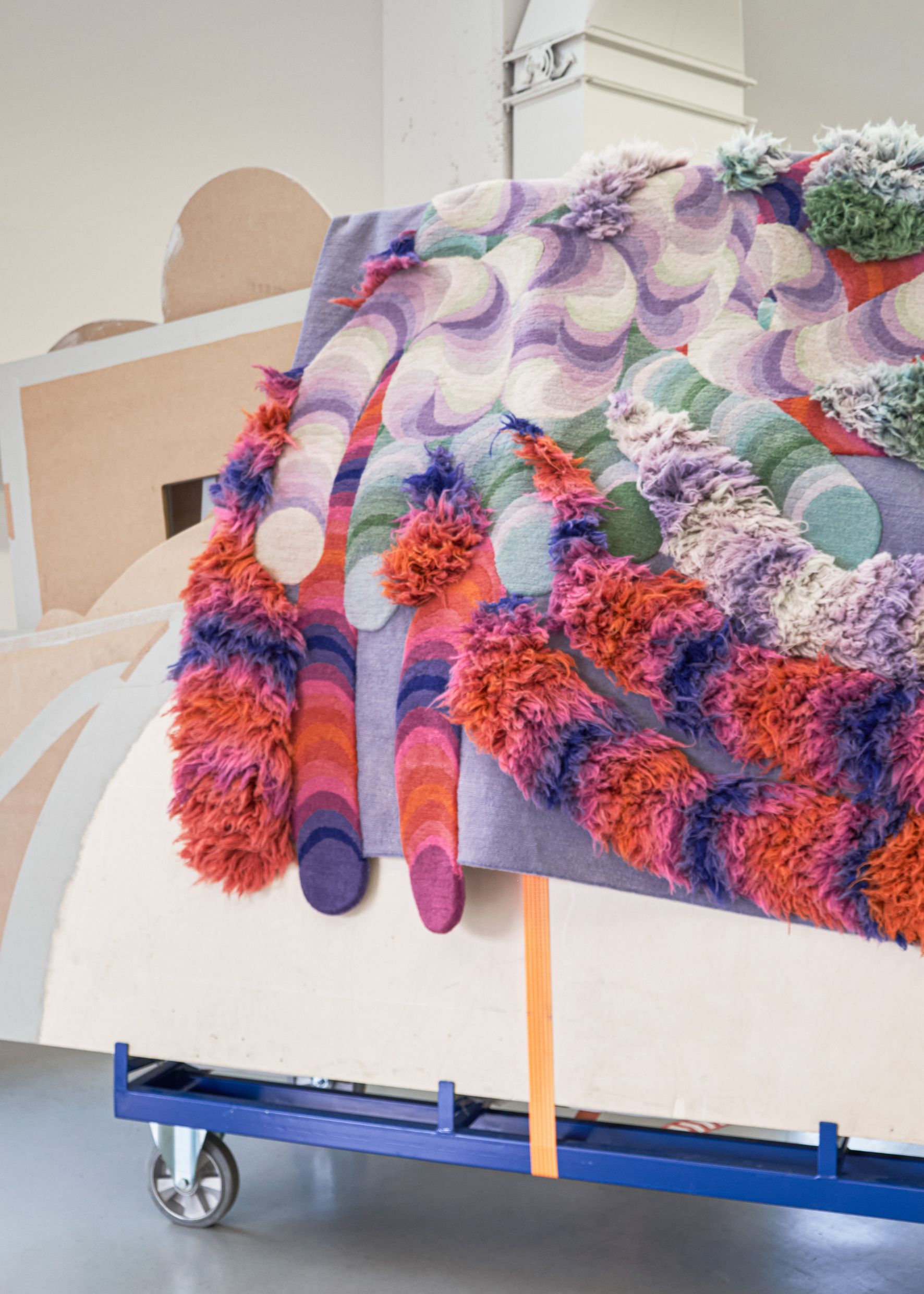 Tapis noué main Pipeline Wallhanging 1, collection « Pipeline », signée Patricia Urquiola, en laine d’Himalaya, 184 x 231 cm (CC-tapis).