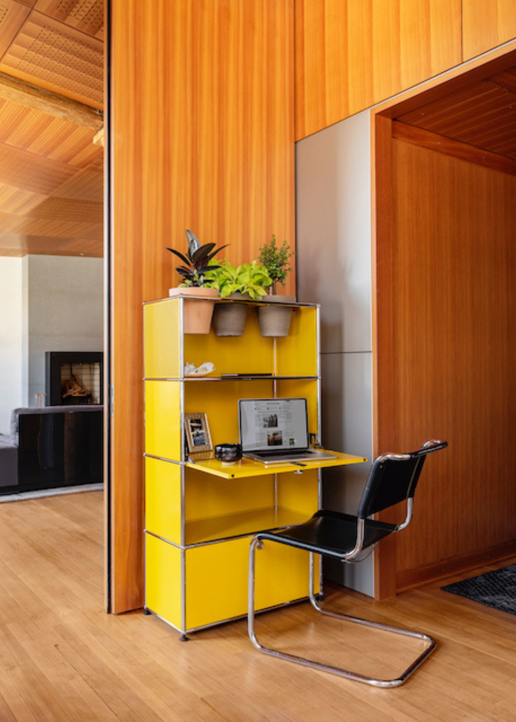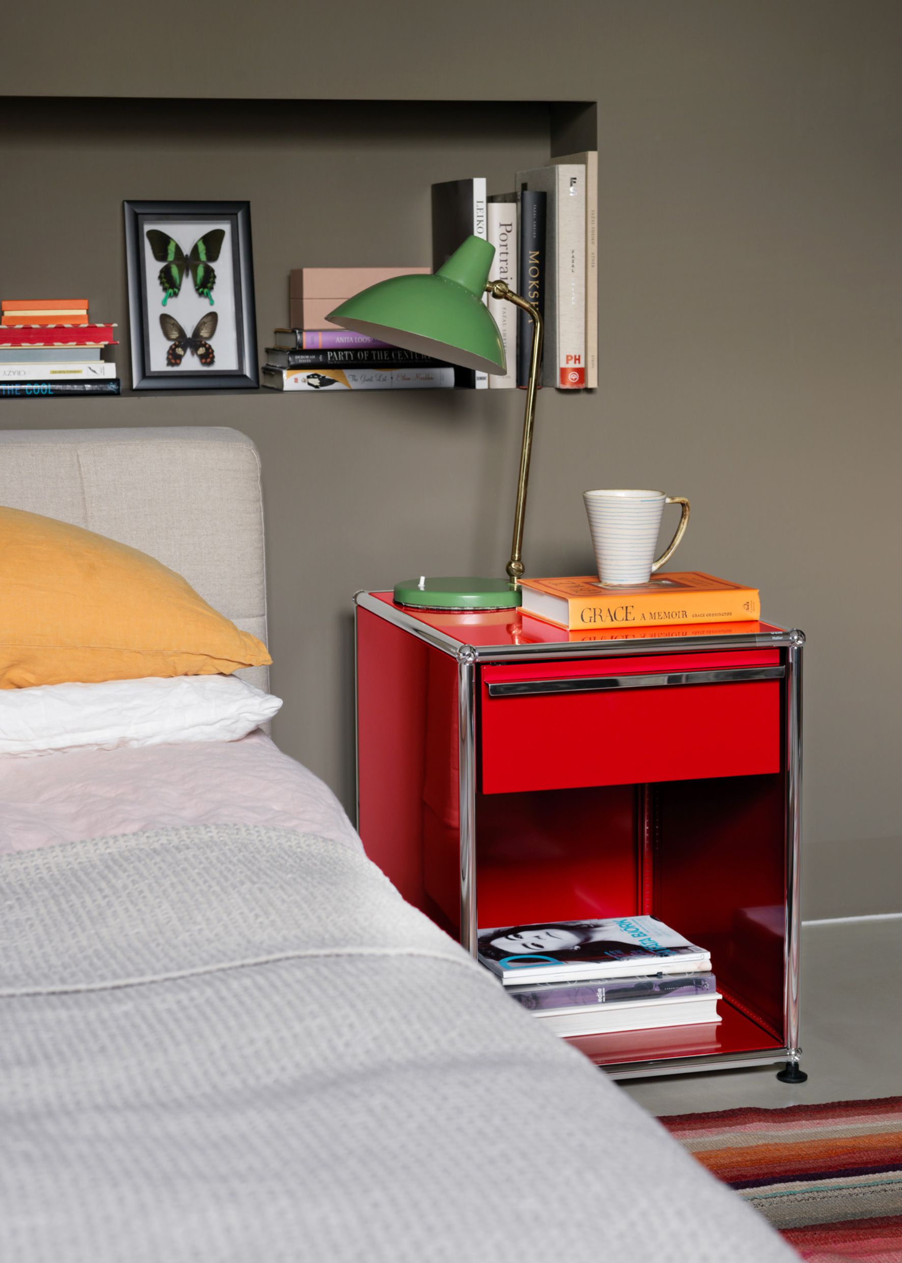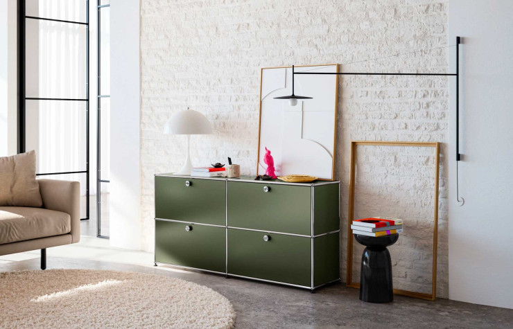 Une bibliothèque murale jugée rétrospectivement trop spacieuse pourra ainsi trouver une seconde vie une fois transformée en étagères, en table de chevet, en secrétaire ou en desserte. Si l’offre d’USM Haller, riche de ses 14 couleurs iconiques, n’a pratiquement pas bougé visuellement, d’un point de vue technique, elle n’a cessé de s’affûter.