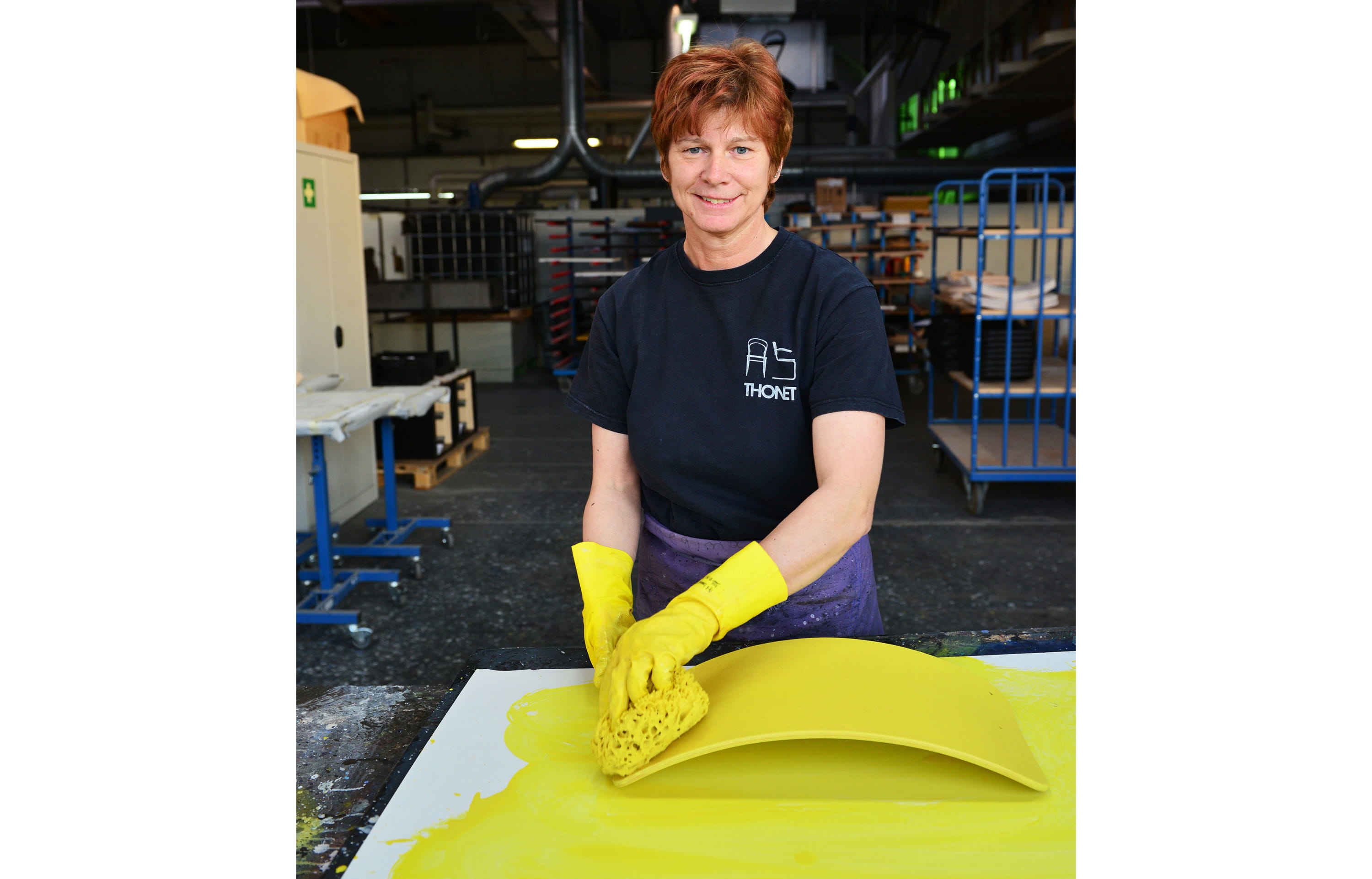 Les méthodes inventées par Michael Thonet pour le cintrage du matériau naturel, mises en place dès 1819 et développées à partir de 1859 avec le bois massif et la création de la célèbre chaise N°14 (aujourd’hui N°214), sont identiques à celles d’origine. « Nous réalisons une production de série, mais chaque pièce est unique, parce qu’elle est passée, à un moment ou un autre, entre les mains expertes de nos ouvriers. L’intervention humaine garantit la qualité », indique Brian Boyd.