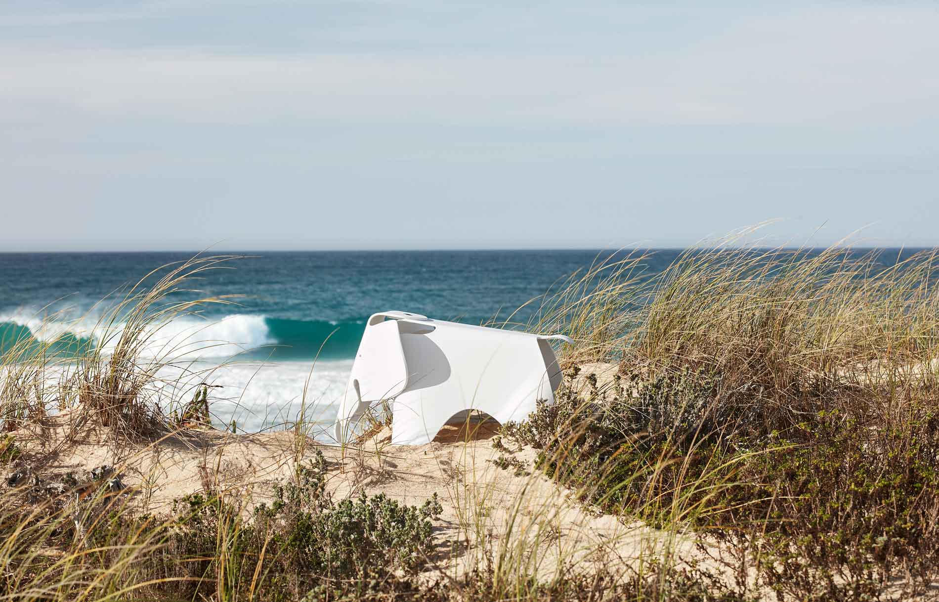 Du reste, mais l’on s’en serait douté, ce n’est pas le seul coup d’éclat du légendaire couple de designers. Au panthéon de leurs créations devenues iconiques, l’Eames Elephant occupe une place à part. Et pour cause ! C’est aux enfants qu’il s’adresse. Imaginé en 1945 par Charles et Ray Eames, ce jouet n’a pas été produit en série mais exposé au Museum of Modern Art de New York. On ne peut que féliciter Vitra de lui avoir offert une seconde jeunesse en décidant de l’inscrire à son catalogue. Désormais disponible en versions cerisier américain ou polypropylène teinté dans la masse, cet accessoire espiègle ne demande qu’à estomper un peu plus la limite entre l’indoor et l’outdoor. Une tâche pour laquelle les enfants ne manqueront pas de lui apporter leur aide…